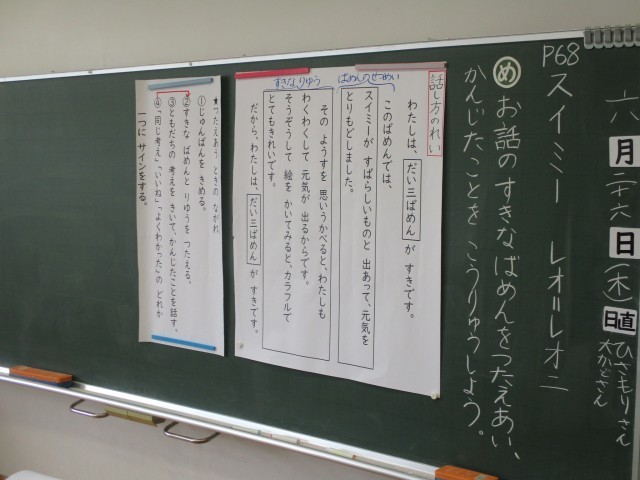 など、しっかり理由も言えていました。好きな場面を選ぶ視点として「きれいだから。」「わくわくするから。」「力を合わせているから。」など一人一人が「好き」をいろいろな言葉で表現していました。