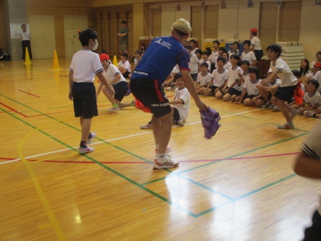 FC東京の選手が来校し、6年生と一緒に体を動かしました。