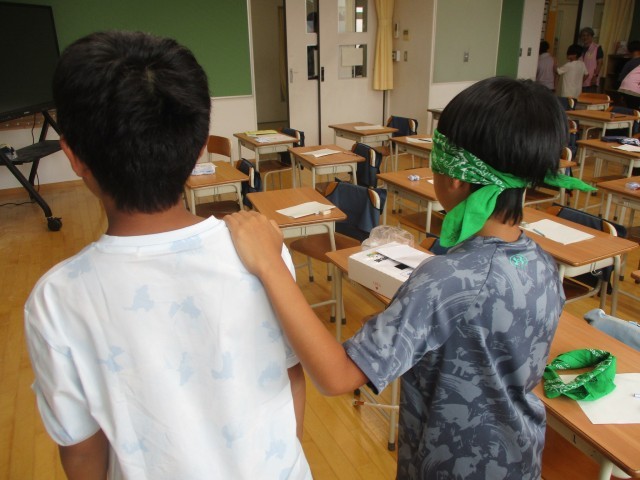 授業終了後、社会福祉協議会の方々から「とても積極的に学習に向かう子ばかりで嬉しくなりました。」、「目の不自由な方の大変さが分かったという感想を聞けて嬉しかった。」、「点字ブロックの上に自転車を乗せない理由が伝わったので、これから子どもたちも、それを聞いた皆さんも気を付けてもらえれば。」などとお話をいただきました。