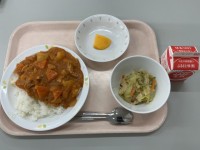 今日のこんだて大根カレーライス白菜とコーンのサラダくだもの(みはや)牛乳