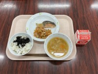 今日のこんだてごはん魚のフライもやしとわかめのサラダけんちん汁牛乳