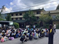 予定通りの時刻に宿舎に着きました。宿に入ってすぐに、避難訓練を行いました。避難経...