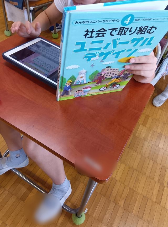 5年生は、ユニバーサルデザインについて調べてまとめているようです。総合的な学習の時間?いや、国語です。ということで、調べてまとめて終わりではなく、そこから自分の考えを文章にまとめていくのが最終的なゴールのようです。