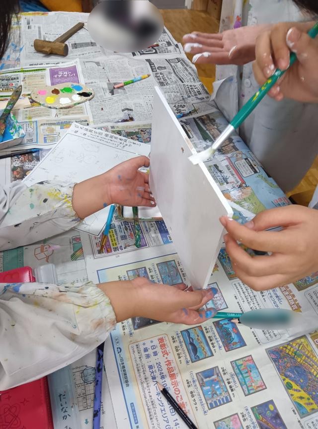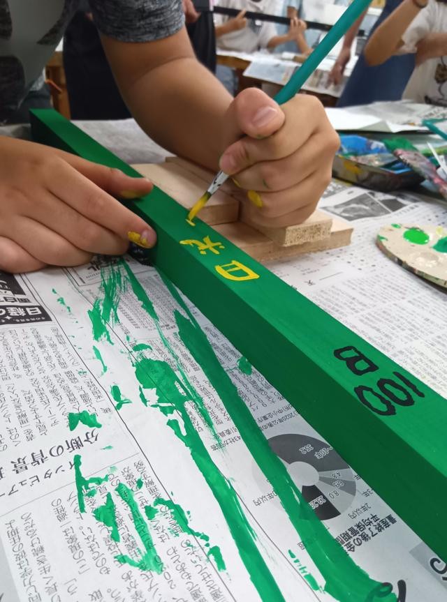 プレートには、自分たちが作ったと分かる情報と、日光に関連した絵や好きなものを描きます。SL、日光東照宮、さくらちゃん、パックン、ヨッシー!?好きな野球の球団ロゴもあります。そして木への熱い思いを表現します。