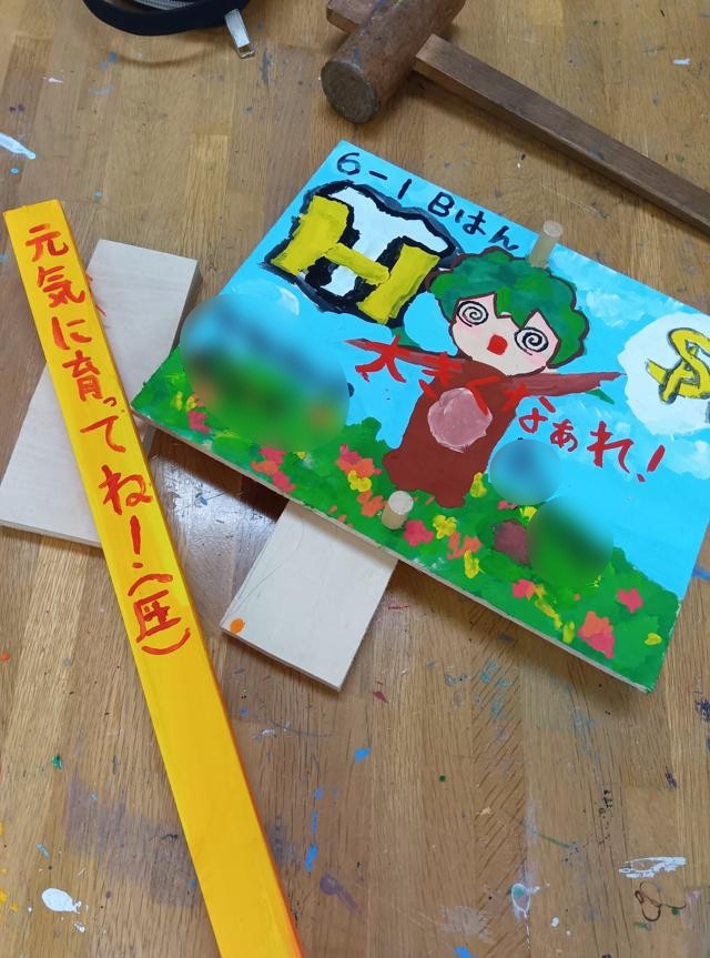 各学級で個性があり、今年もおもしろい植樹プレートが完成しました。昨年度植樹した木も見てこられたらと思います。大きくなっているかな・・・。植樹した木の成長と、子どもたちの成長を重ねて見てしまいます。