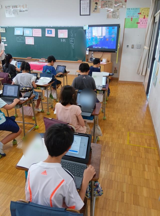 学校全体の先頭を切って、3年生の学級で切り替えの作業を行っていました。切り替えは比較的簡単で旧機体でサインアウトし、新しい端末にアップルのアカウントで入りさえすれば、様々なデータが引き継がれます。3年生の子どもたちもアカウントの用紙を片手に切り替えの作業を行っていました。3年生はなんとかこの入力を自分でできる子どもが多いですが、学年によっては入力が難しいこともありますので大変です。