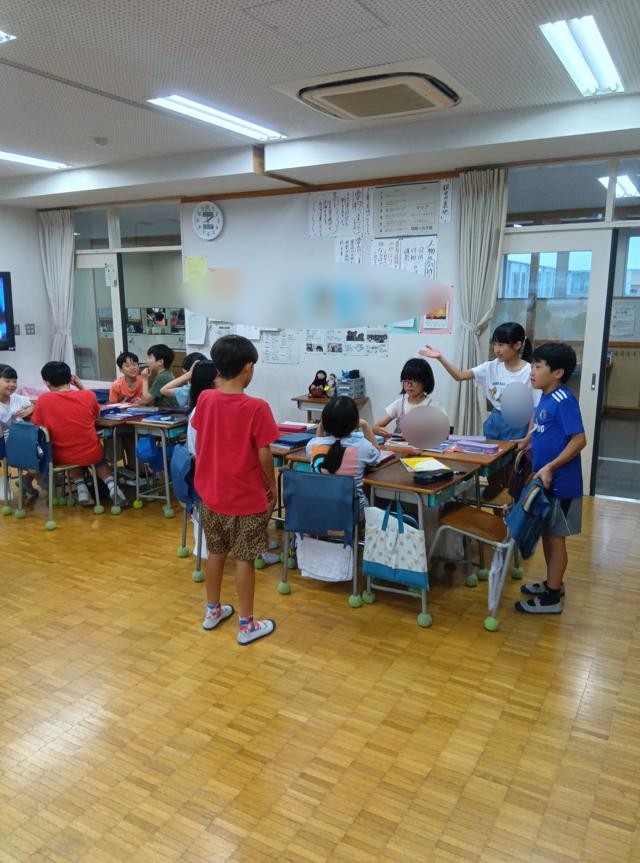 ちょうど、「海派」と「山派」に分かれて意見を交換しているところでした。それぞれすすめる理由を考えて発表し、質疑応答を経て判定を受けます。対話と言いつつ結構熱くなる子どもたちです。それはそうです、自分の推す意見を通したいと思うのは当然です。ただこれはやはり対話、なので、結果はさておき、相手の意見の良いところを見付けることに主眼を置き、自分の意見を広げるくらいの感覚が大切でしょう。判定をした人もそれぞれの良さについて触れていました。