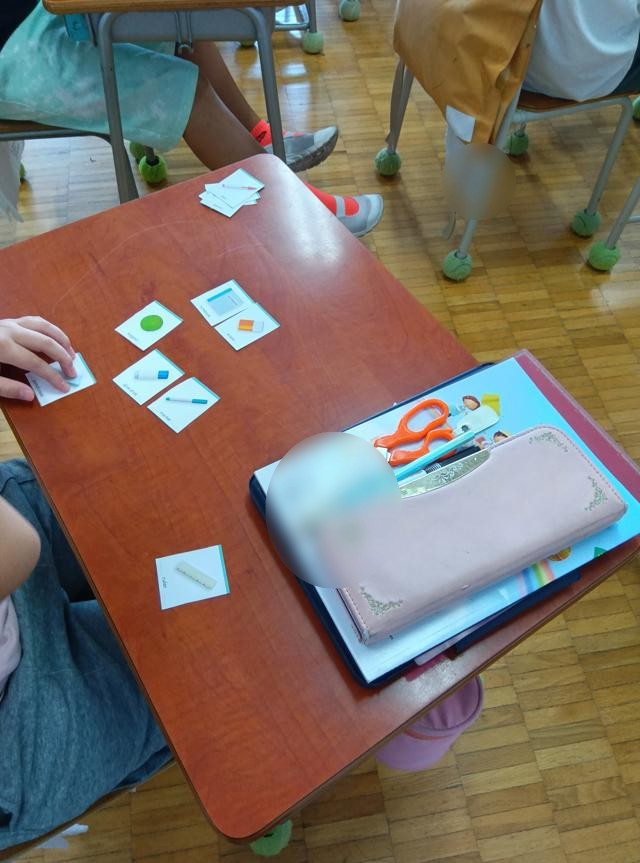 と言った具合に、その子が3つ選んだ文房具を全て当てるゲームです。「いくつ当たっているか」を教えてくれます。どれが当たっているかは分かりません。友達が挙げたものもよく聞いておかなくては最終的な正解には辿り着きません。その後、何人かで1つずつ当てながら、行ったり戻ったりしつつ、、最終的な正解にたどり着きました。