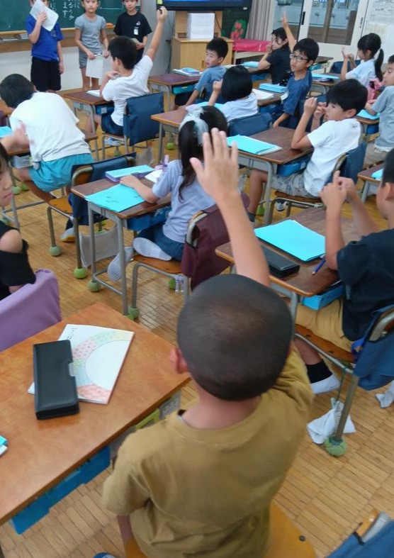 2学期の初め、京西小学校でも何人かの転入生を迎えています。2年生のある学級では、歓迎のお楽しみ会を行っていました。見事な輪飾りが飾られています。京西小学校に早く慣れてもらえるように、みんなで親切にいろいろと教えてあげてほしいと思います。