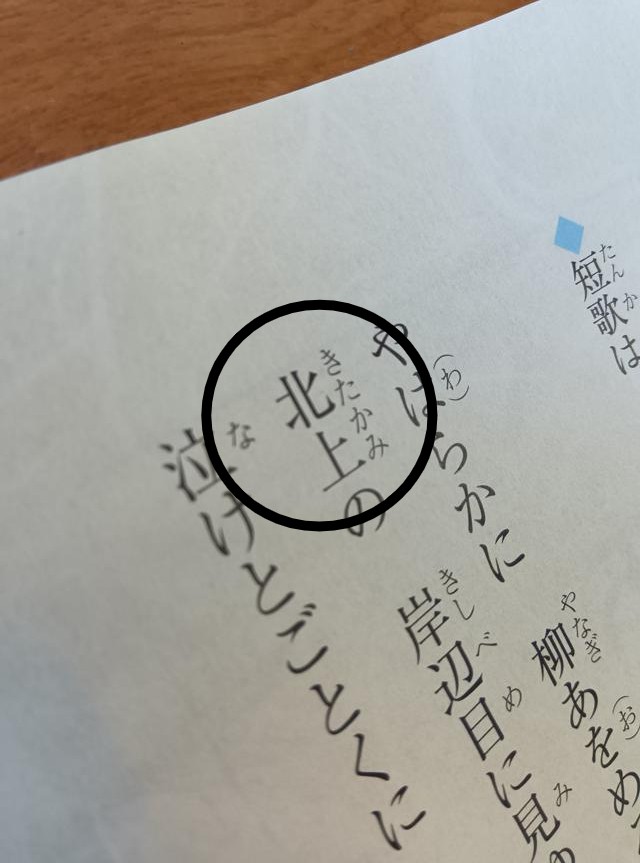 と答えていて不意を突かれて吹き出してしまいました。「KITAの神」という感じのイメージでしょうか。日本語では、言葉の響きを楽しみながら短歌全体を味わうので、そこまで細かい解釈の確認はしませんが、この後「北上」という地名や「北上川」という川があることを紹介していました。