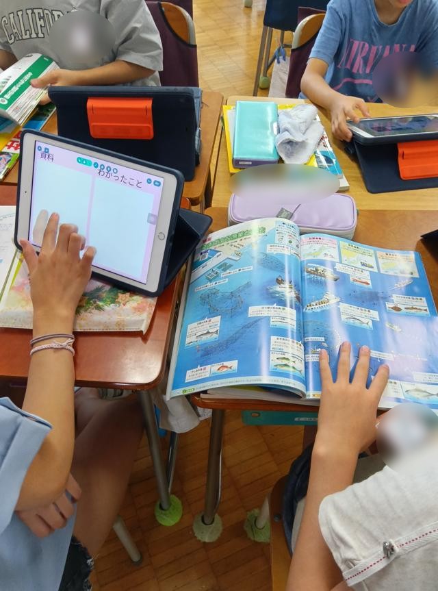 2学期、5年生の社会科では「漁業」についての学習を行っています。漁業について、課題を決め、調べたり、共有したりしながら学習を進めています。
