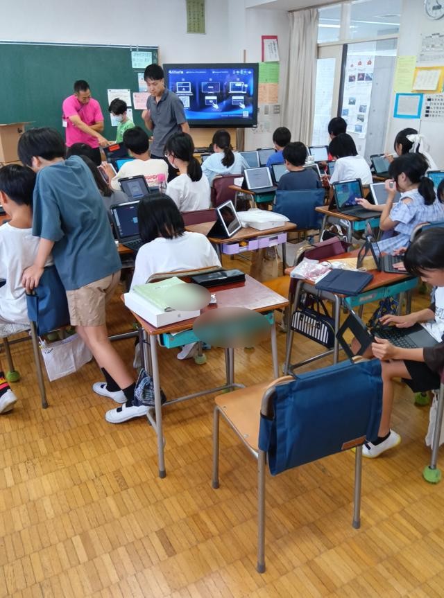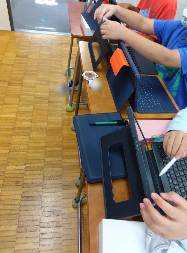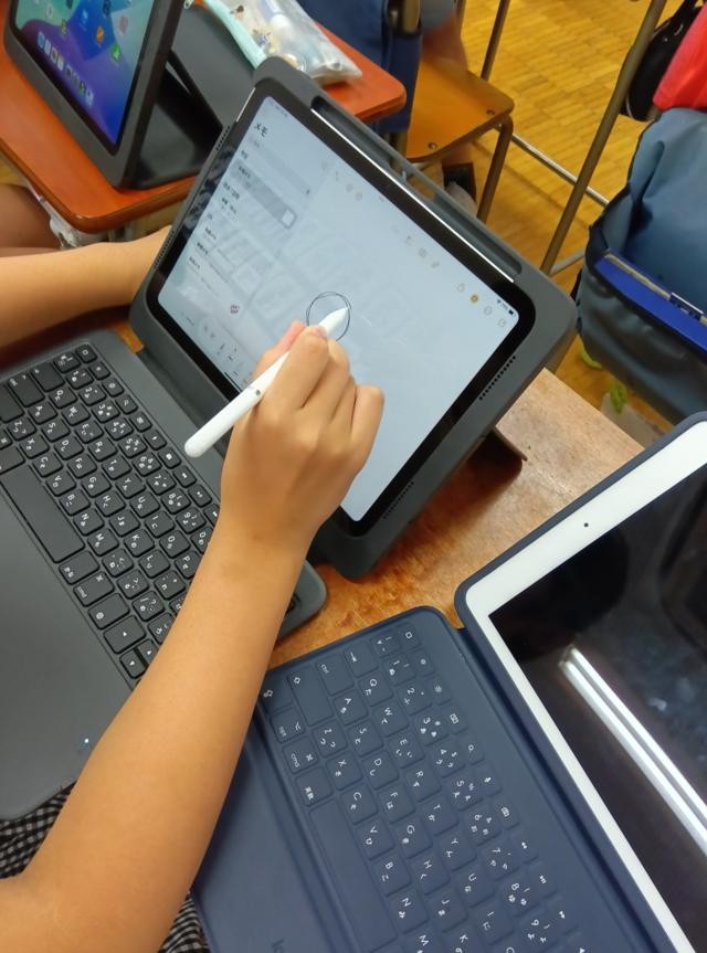 もう1つ、6年生でも順次タブレット端末のリプレイスを行っています。先日、ある学級で交換の作業を行っていました。アカウントの入力やデータの引き継ぎを行っていきます。うまくいったら、早速使ってみます。何かのアプリでしょう・・・スタイラスペンで適当に〇を描くと、ピッときれいな円の図形に変換されるのを見て驚いていました。できそうなものですが、前はできなかったのでしょうね。それはさておき、容量も増え、いろいろと新しくなったタブレット端末、快適に使えると思います。6年生にとっては、1年生から5年間以上使ってきた旧友との別れでもありますが、卒業までの間、新しい相棒を学習でどんどん活用していってほしいと思います。