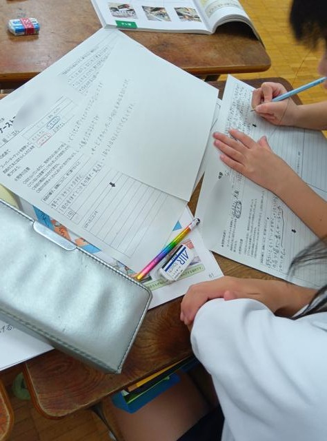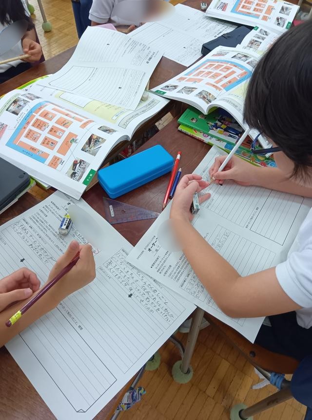 3年生が週明けに出かけるスーパーマーケット見学に向けての準備をしていました。