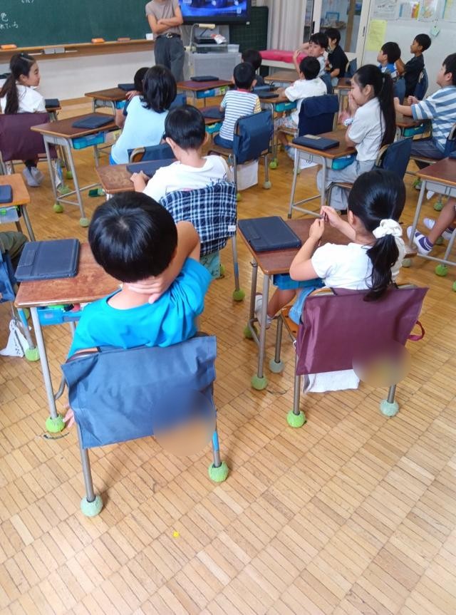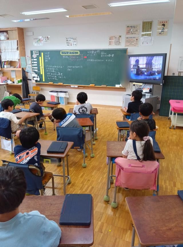 さて、ということで実はここからがメインです。2年生の生活科の授業です。虫を育てる活動に入るようです。まずは、1年生での活動を振り返ったり、最近の虫や植物の様子について考えたりしていました。1年生では、虫を探しに行き、虫に触れ、虫と関わる中での気づきをたくさん見付けたことと思います。その経験も踏まえて、今回は虫を飼って育てる活動を行います。まだ暑さが残っていて、季節は夏に近いですが、