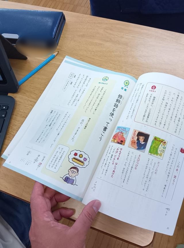 ということで、3年生の国語では、文章を詳しくする「修飾語」を使って文章をより分かりやすくする学習をしていました。冒頭の文章は、その中に出てきていたベースの文章です。