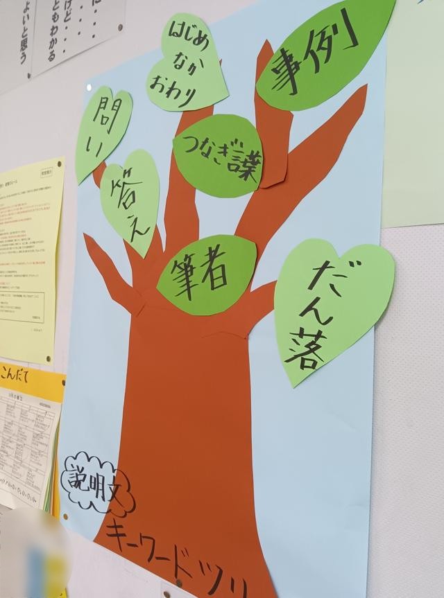 国語の学習の軌跡が教室の壁に貼ってありました。子どもたちは身に付けた力を確認したり、学習の中で思い出すときに使ったりできていいですね。