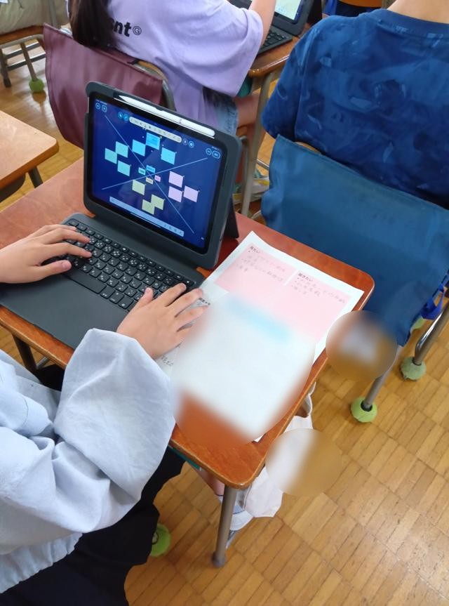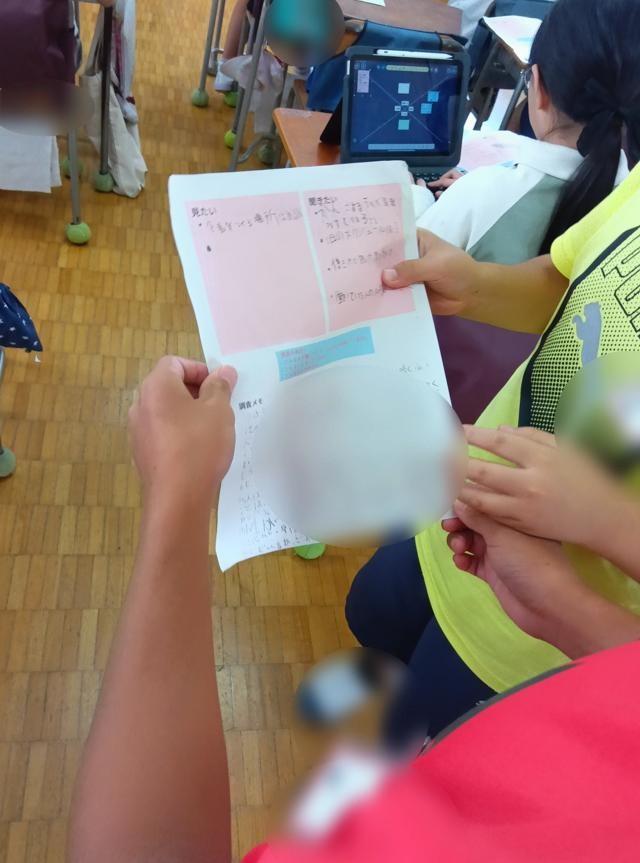 9月に各学級ごとに、地域の高齢者向け介護施設の見学をさせていただきました。そこで見てきたこと、聞いてきたことから今後の活動について考えていきます。思考ツールを使って、「入居者」「施設の方」「施設」「その他」に分けて、情報を分類していました。結構身近にあるものの、なかなかその中のことまでは分からない介護施設について、初めて知ることも多かったと思います。今回は見学についていけなかったので、どういった見学になったかの詳細は私も知らないのですが、今後の活動に向けてたくさんの情報を集めてくることができたのは分かりました。