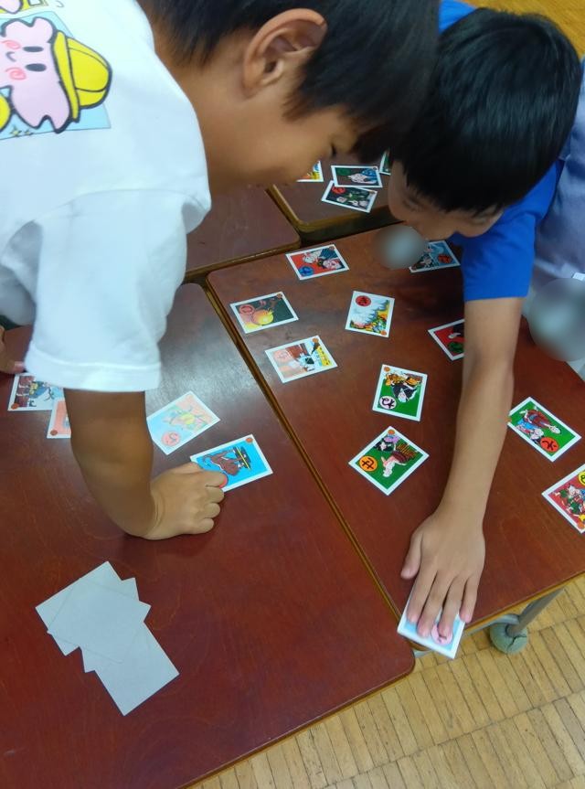 学習の中では、「犬棒かるた」を楽しむ場面もありました。定着させたり、新たに言葉を知ったりするのに楽しみながら取り組めていていいですね。やっぱり楽しくなくっちゃ。