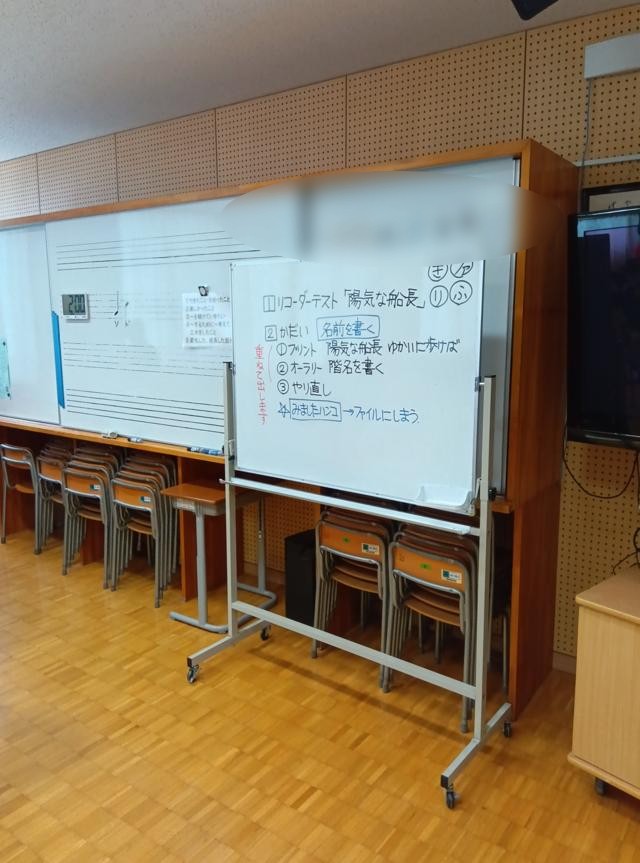 もう少しでテストの子かもしれません。リコーダーを分解し、棒に付けた布を差し込んでリコーダーの掃除をしていました。まるで、火縄銃に弾込めをしているように・・・陽気な船長との落差・・・一瞬戦国時代に連れて行かれそうになりましたが、ここは2025年、令和の世の中です。ということで、テスト前、準備万端、リコーダーの整備に余念がない四年の音楽でした。テストがんばって!