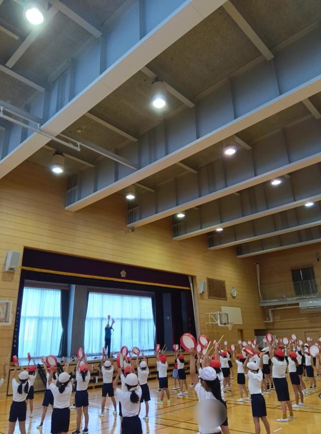 そして今週、運動会時程が始まり、体育館での表現の練習に入っています。エイサーに挑戦する3年生、パーランクーを持ち、小気味よい音をさせていました。