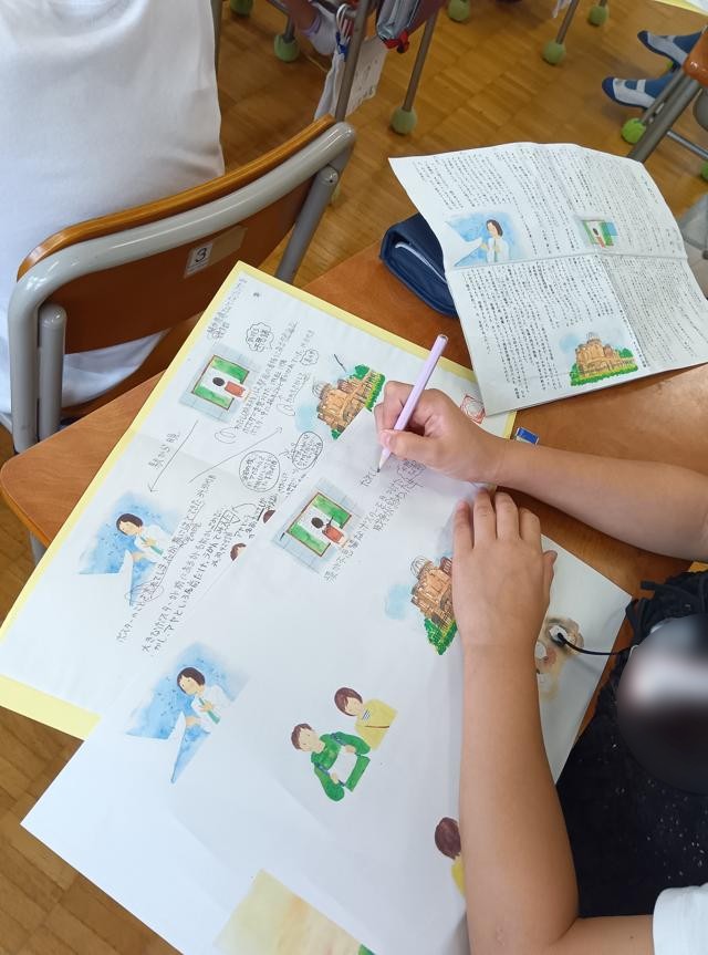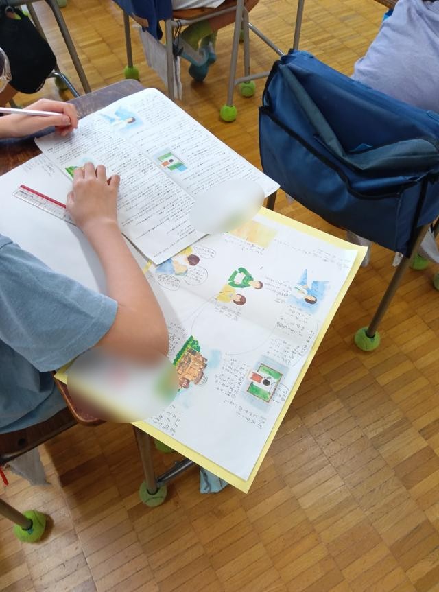 いずれにせよ、限られた時間にたくさんの情報をまとめる力が必要です。5年生は黙々と作業をしていました。その後の共有まで、密度の高い国語の時間でした。これは少し前の写真なので、もう「たずねびと」は終わり次の単元に入っているかもしれません。次の授業も楽しみです。