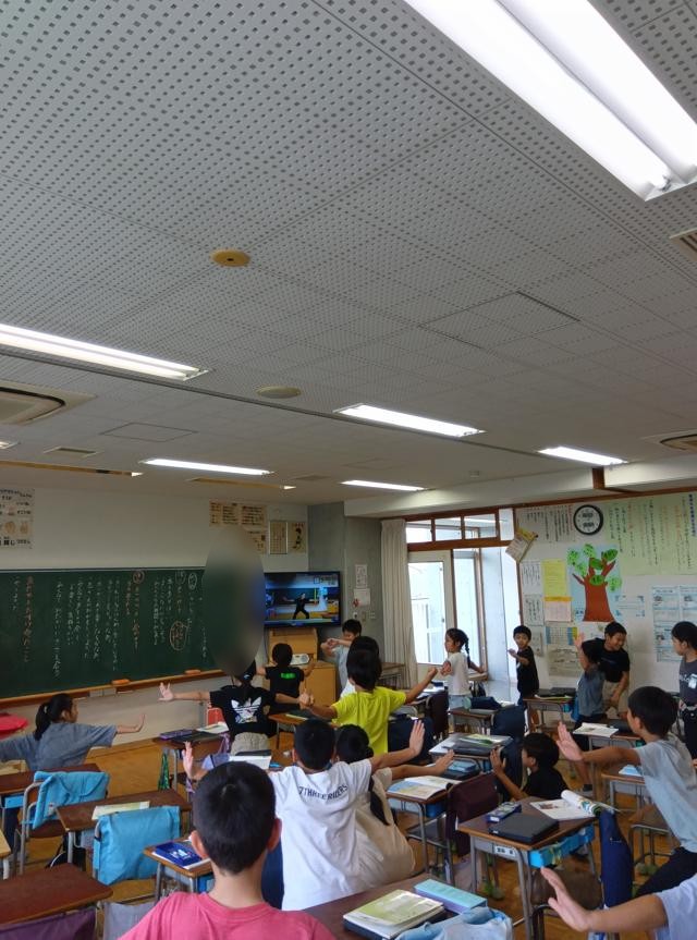 3年生の運動会、表現種目はエイサーです。パーランクーという太鼓を打ち鳴らしながら軽快に踊ります。隊形移動以外はすでにひと通り取り組んでいるようですが、本来ならまだ体育館で練習している時期、まだまだこれから高めていくところがたくさんありそうです。例えば、動きをそろえるところやパーランクーの音をそろえるところなどです。いまはまだバラバラですが、これからそれがそろっていくのが楽しみです。しかし、この時期にしたらかなり進んでいるのに感心しました。