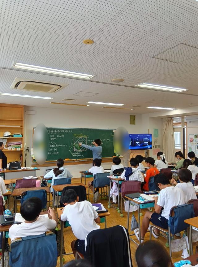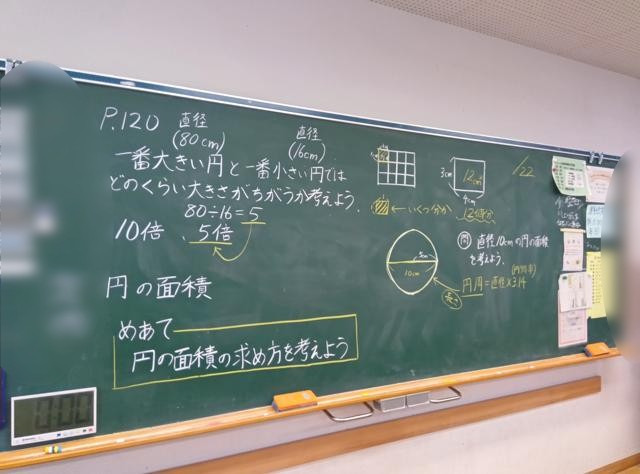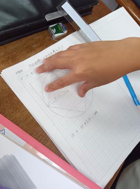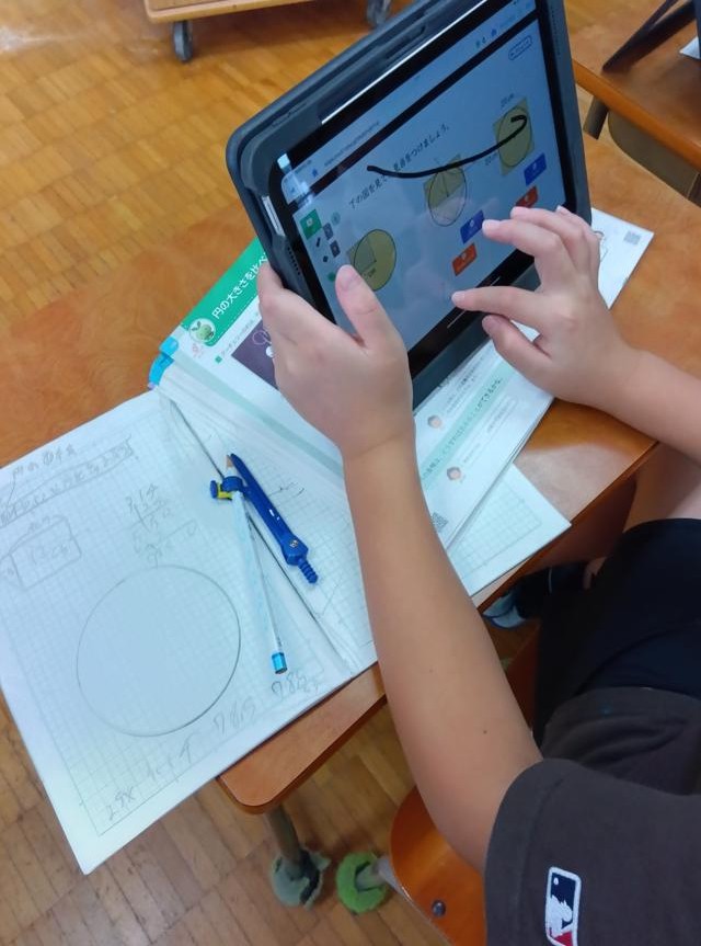 算数で「円」の学習をしている6年生、円周の求め方、円の面積の求め方を学習しています。