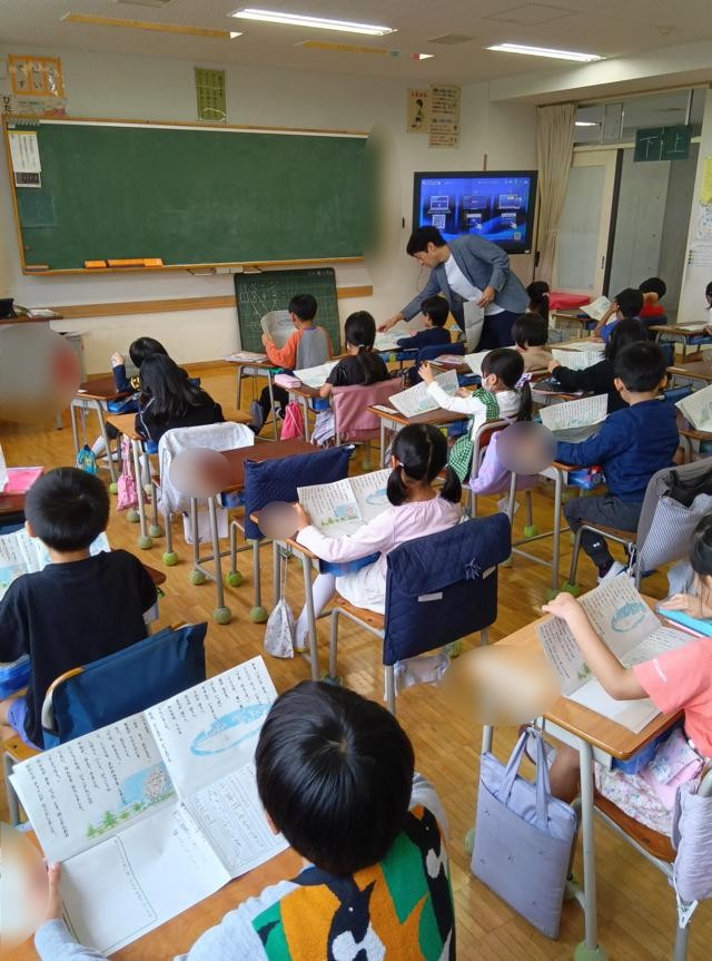 国語「くじらぐも」を学習している1年生です。この日は、登場人物や場所などの設定を確認していました。