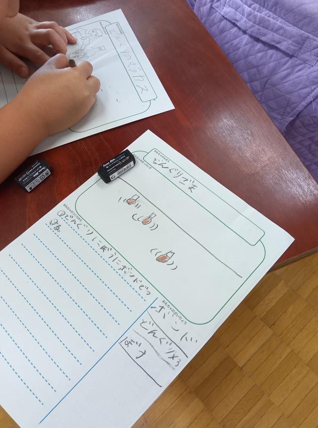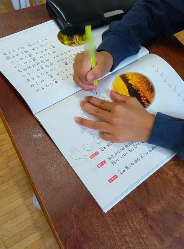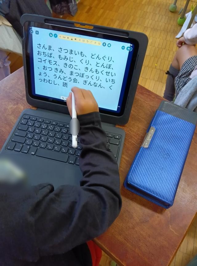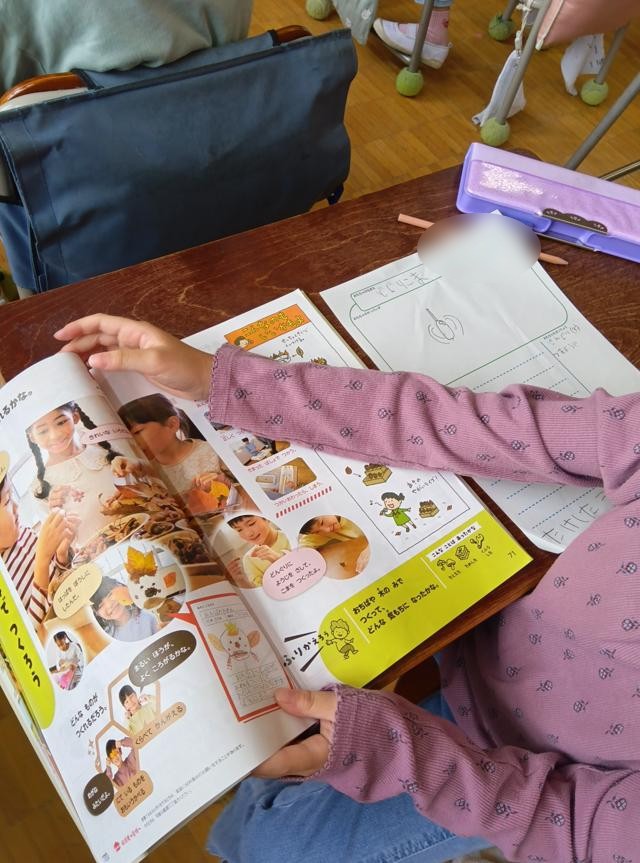 少し前にも紹介させていただいた1年生「秋さがし」に出かける準備中です。