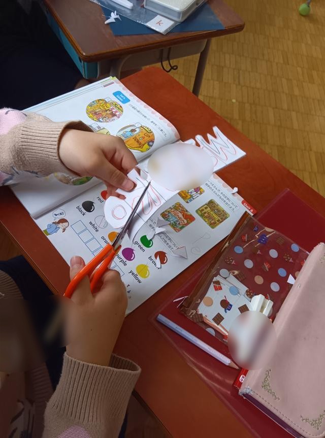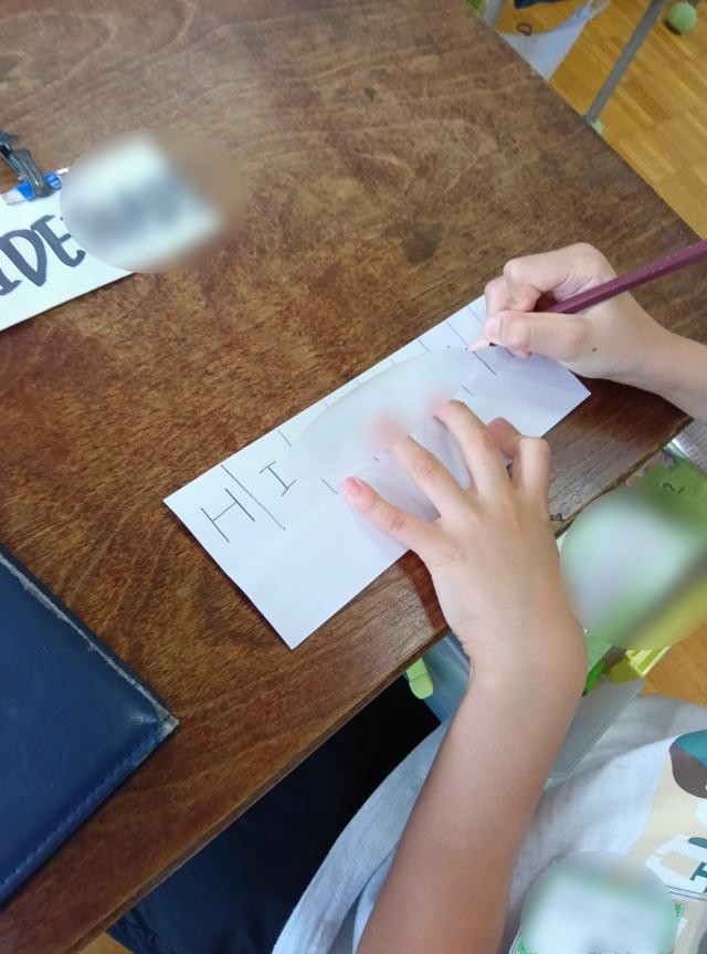 3年生の外国語活動です。名前をアルファベットで書いていました。