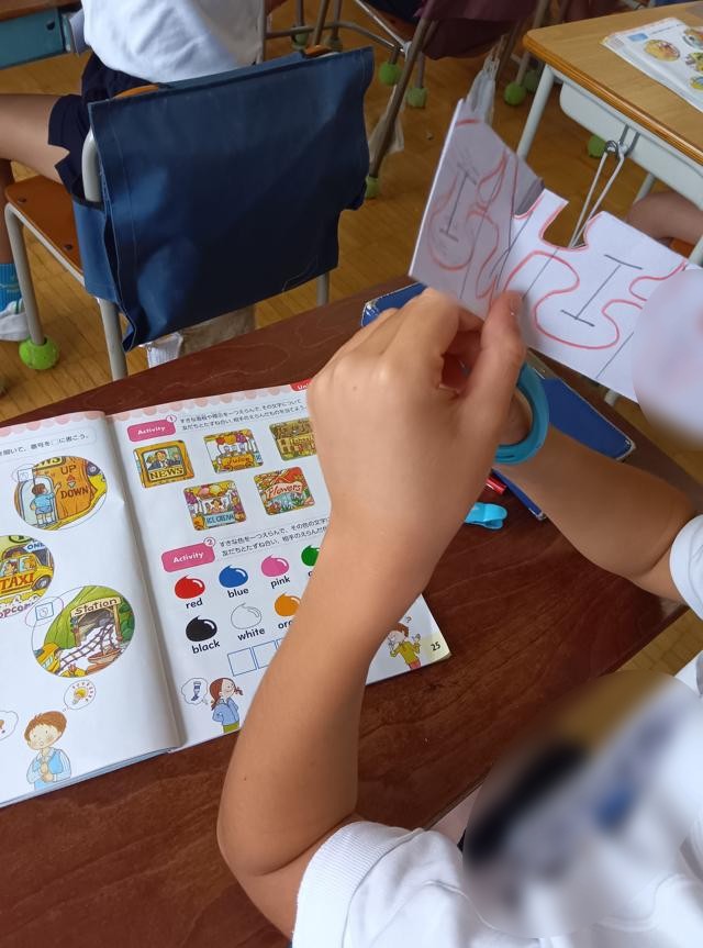 名札はあるし、何を作るんだろうと思っていたのが少し前、写真の6枚目くらいまでの頃です。その後、はさみで切っている場面にも出会いました。あ「あ、あの続きだ。」と思って見ましたが、これがどうなるのかその時も分かりませんでした。それが最近になって分かりました!