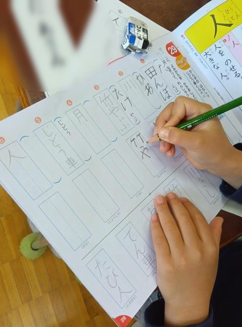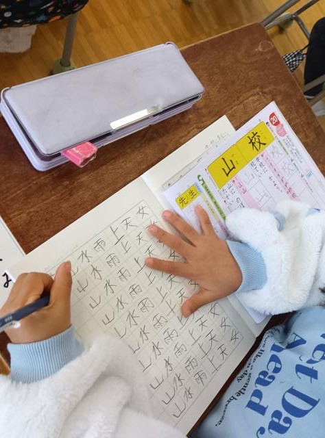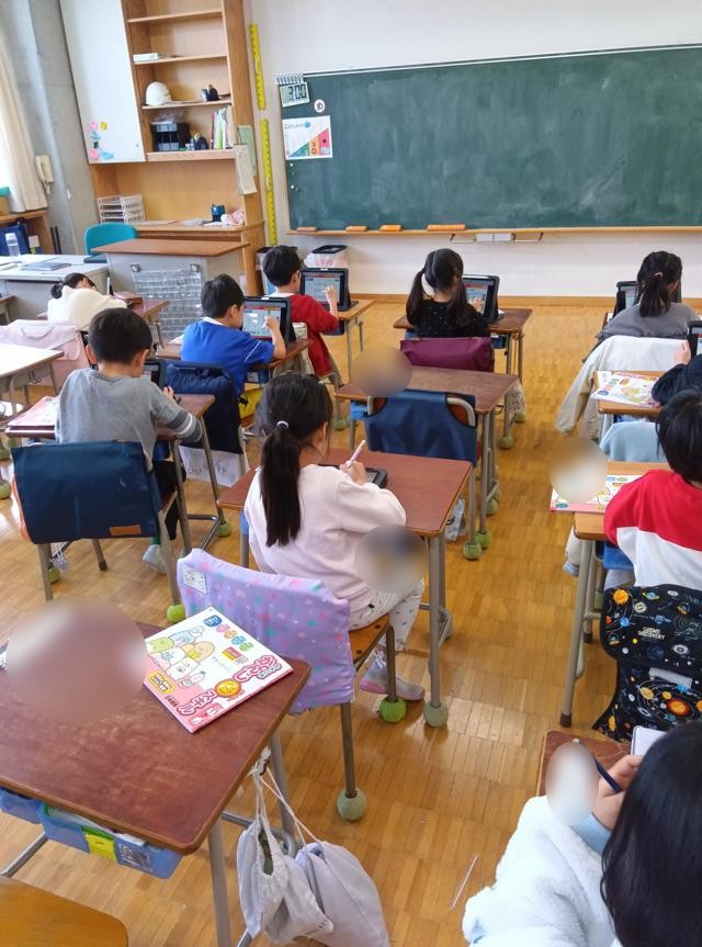 後半の写真は、漢字テストに向けて練習をしているところです。タブレット端末を使って練習をしている子もいますし、練習用のノートに書いている子、ドリルの言葉の練習をするページを使っている子もいました。どれか一辺倒になるよりも、ときに応じて様々な方法で取り組めるといいですね。そして熟語で練習するのも大切です。