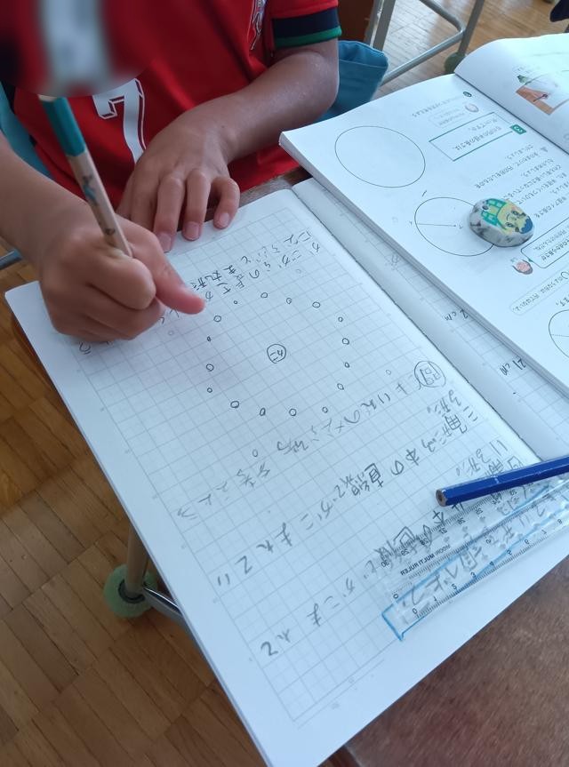 まずは、玉入れを使って学習に入り、円の性質がよく分かったと思います。そして、これからコンパスを使った作図などの学習もあると思いますので、引き続き学習の様子が楽しみです。