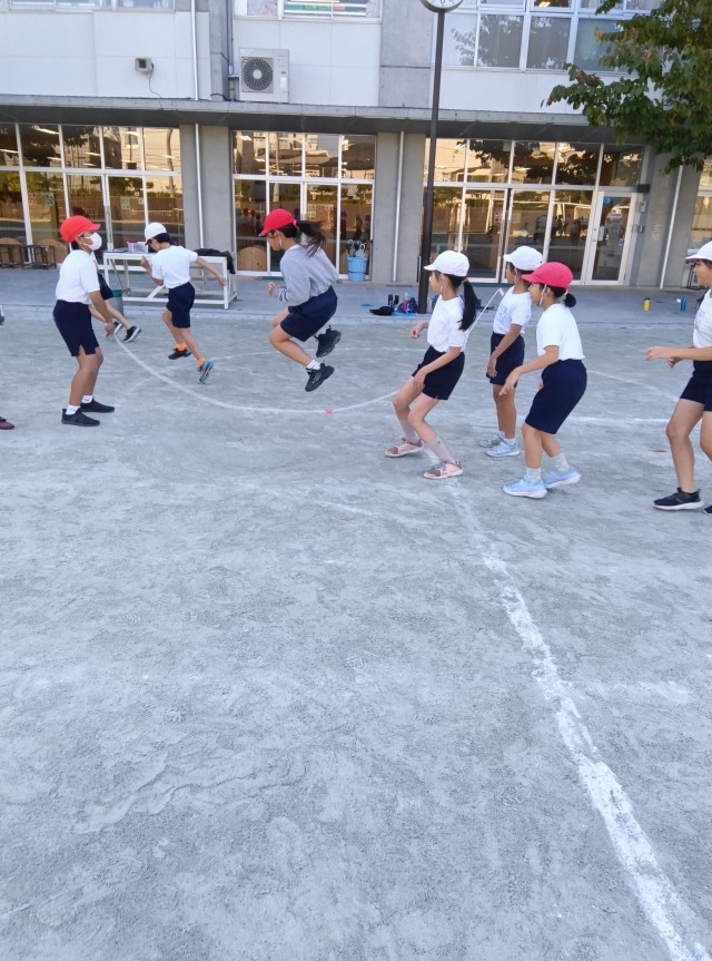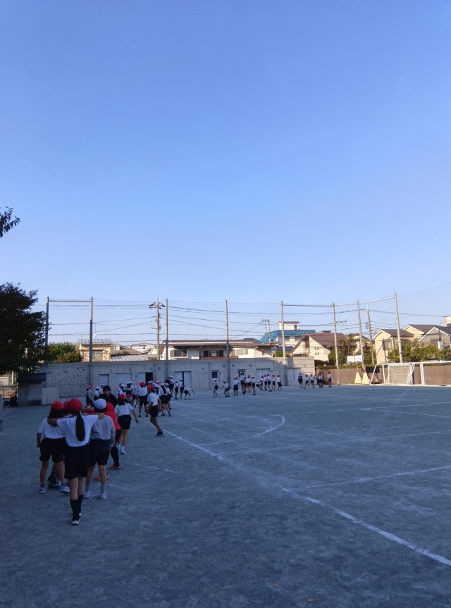 さて、後半の写真、体育の時間に4年生が校庭で長縄の練習をしているところです。さすが4年生、連続跳びがよく続きます。良い記録、各学級の記録の伸びが期待できそうです。校庭がずいぶん影に覆われています。この感じだと5時間目の後半~6時間目の始めといったくらいの時間帯です。日陰になる時間もだいぶ早くなってきました。夕方、外が暗くなる時間も随分早まっていますが、暗くなる前に家には帰れているでしょうか。この時期は、4時30分には家に帰ることになっています。暗くなると交通事故の危険性も一気に上がりますので、時間を守って家に帰ることができるように御家庭でもお話ください。