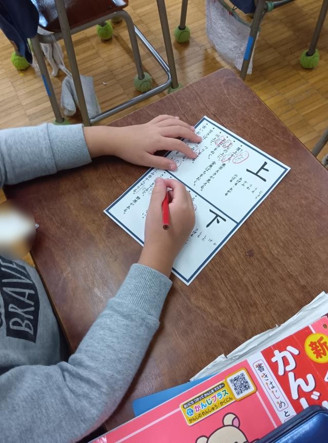 1つは、「漢字」ですが、「上」「下」は1年生で習ったのでは・・・?どうやら今回は、音読み、訓読みを含めて様々な読み方を整理してか学習しているようです。この二つは、文脈によって読み分けなくてはいけない、とか、送りがな1文字違いで読み方が変わる【上る(のぼる)、上がる(あがる)】などとても難しい2字です。しかも日本語特有の他の言葉とくっついて特別な読み方【上(うわ)ばき】になったり・・・まだ習っていない読み方もありますので、これ自体は、これから覚えていけばいいのですが、言葉に興味をもつきっかけにしてくれるといいなと思います。