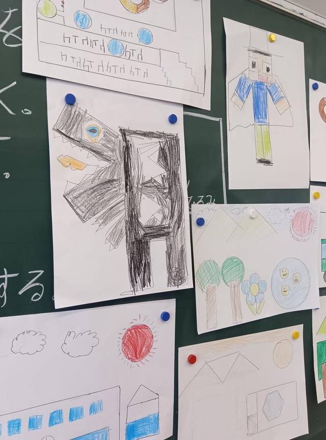 これだけでも結構いろいろな絵を描けるものですね。上手に組み合わせて、動物などの生き物にしたり、四角形をたくさん使ってロボットにしたりしていました。