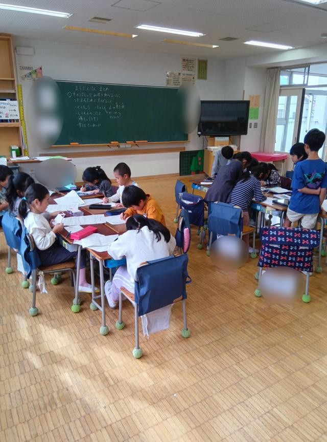 ・・・ということで、これからまとめていきます。これからの学習の中でも繰り返し積んでいく経験の1つです。もしかしたらそのスタートかもしれません。最近は、タブレット端末上で作ることも多いですが、紙を使った活動も経験として大切です。様々な形を経験することも含めて、どんどん積み重ねていってほしいと思います。