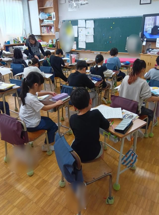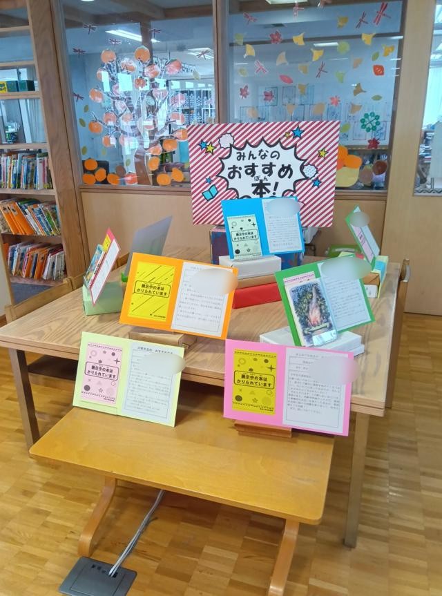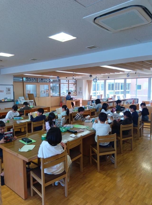 同じ時間に図書室で図書の時間も行われていました。週に1時間、本を読んだり、借りたり返したりします。静かに、読書の世界に入っていました。学校では、読書月間に入っています。図書室には、先生たちのおすすめ本がディスプレイされています。注目度が高く、借りられている本もたくさんありました。いろいろとお知らせさせていただいているとおり、これ以外にも様々な取組を行っていきますので、ぜひ御家庭でも御協力ください。