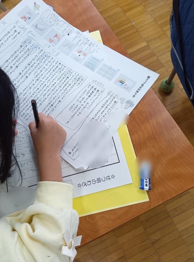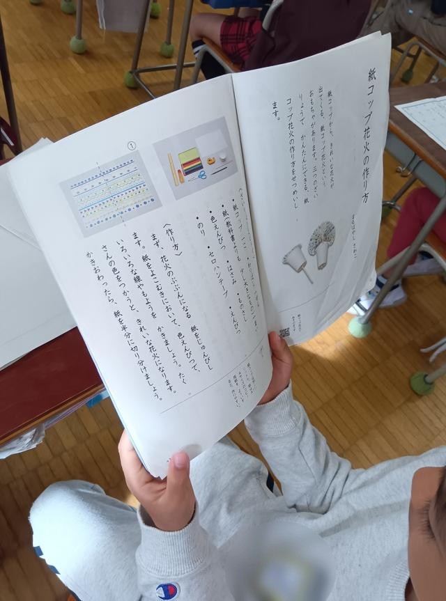 前にもお伝えしましたが、これらの表現は読み取るだけではなく、次は自分でおもちゃを作って、その作り方や手順を文章で表すのが今回の学習です。6年生の「鳥獣戯画」でも、筆者の手法を取り入れて文章を書く学習をしていましたが(世田谷区立京西小学校 | 学校日記 | 11/18 筆者はあなた 6年生)、2年生も役立つスキルを身に付けて、自分のものにしていく過程にあります。
