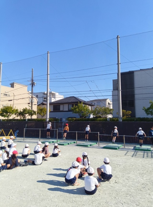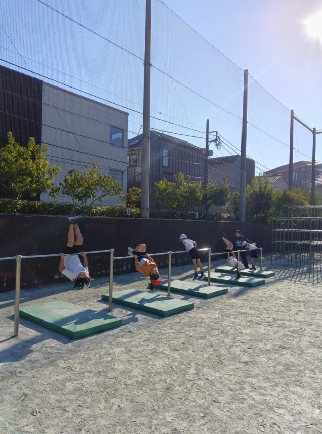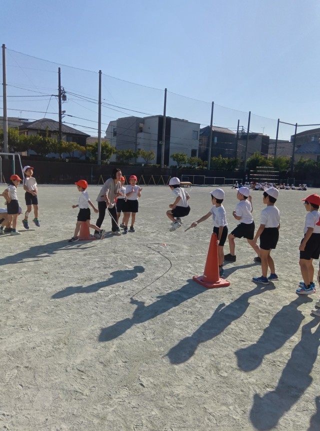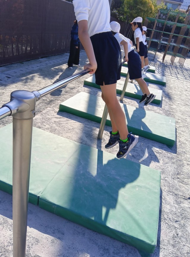鉄棒と交代で行っていたのが、短縄と長縄でした。11月は長縄月間になっていますが、学年によって、すでに短縄を始めている学年もあります。私が見たのは、この学年が初めてです。これからの寒い時期に体を動かすのにちょうど良いですね。長縄が終わってから取り組む学年もあると思います。