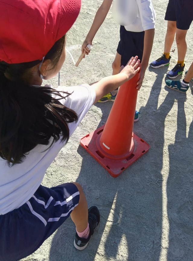 ということで、今どの学年も熱くなっているのが長縄です。先日の集会以降、各学級で体育や休み時間に練習に励んでいます。各学年に目安となる目標は示されてはいるものの、各学級が「自分たちの記録を伸ばす」のが目標です。最後のコーンの写真は、抜ける方向を覚えるために飛んだ後に触る回し手の横のコーンです。跳んだ後、ついつい横に逃げたくなりますが、真っすぐ回してのすぐ横を通り抜けるのが正解です。11月も折り返しです。記録をどこまで伸ばせるか、楽しみにしたいと思います。