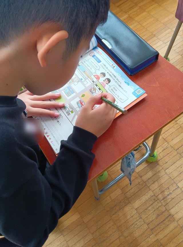 今回の学習では、行き先の建物の単語なども出てきていました。学習を通して、語彙を増やしていきます。