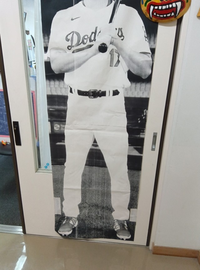 今朝は、全校朝会がありました。そこのお話の中で子どもたちにもお知らせしたのですが、今年も大谷翔平選手のワールドシリーズ制覇(連覇!)、そしてアメリカンリーグMVP決定を勝手に祝して「大谷翔平ウィーク」を行います(山本投手、佐々木投手もおめでとうございます!)。等身大写真も再登場!193cmの大迫力です。御来校の際には、ぜひ記念写真をどうぞ!一昨年、大谷選手が全国の小学校に贈ってくださったグローブを使って、昼休みにキャッチボールできる場所を作ります。しばらくの間行うので、経験のない子たちにもぜひ参加してほしいと思います。