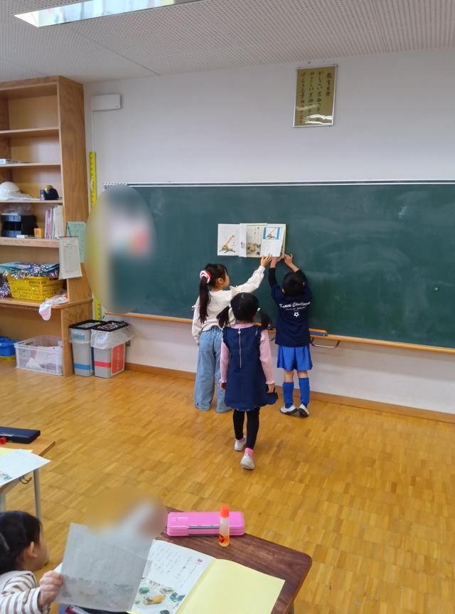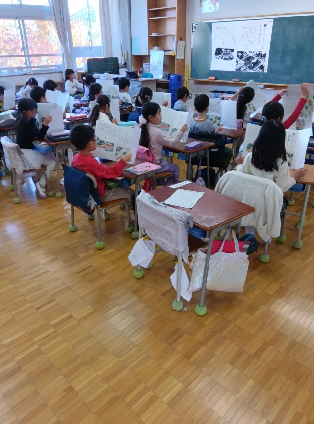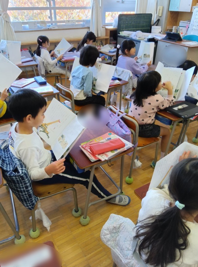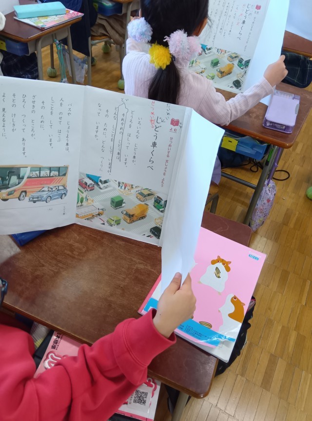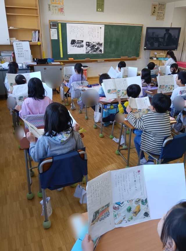 1年生が国語で新しい説明文の学習に入る準備をしていました。