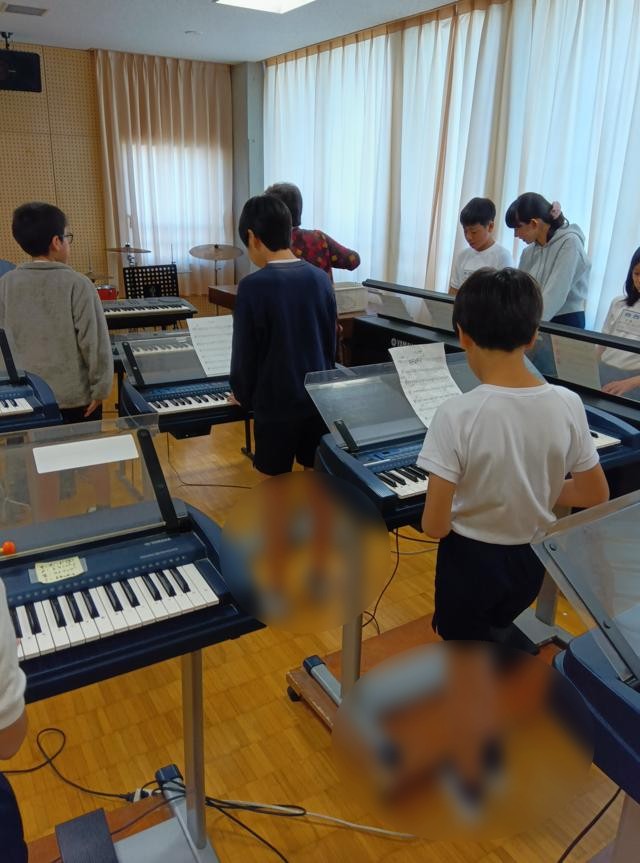 2年生も鍵盤ハーモニカの二部に分かれての演奏は見事でした。さあ5年生は・・・もちろん負けていません。随分上達してきました。この日は、個々に練習をしている場面で、合わせるところは聞けませんでしたが、楽器ごとの練習を見ていて感じました。