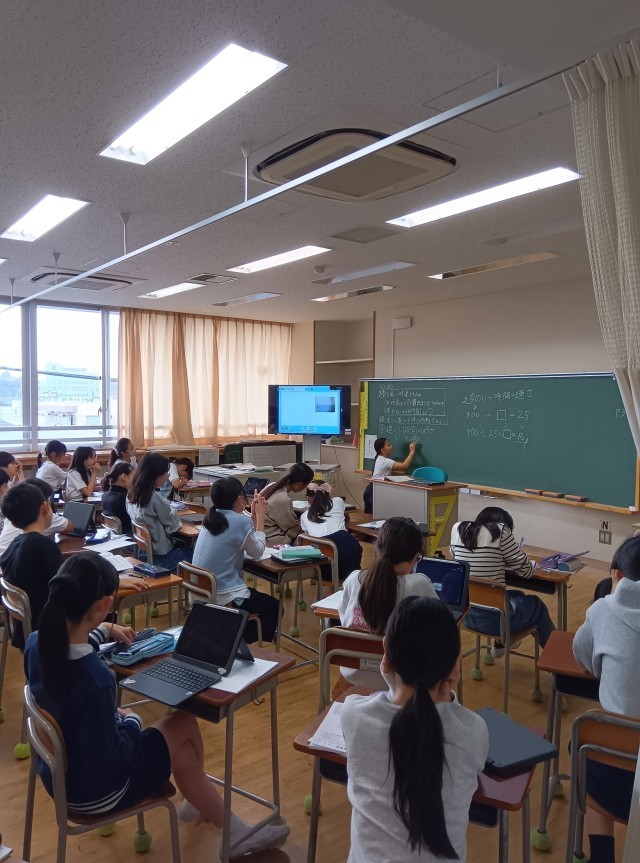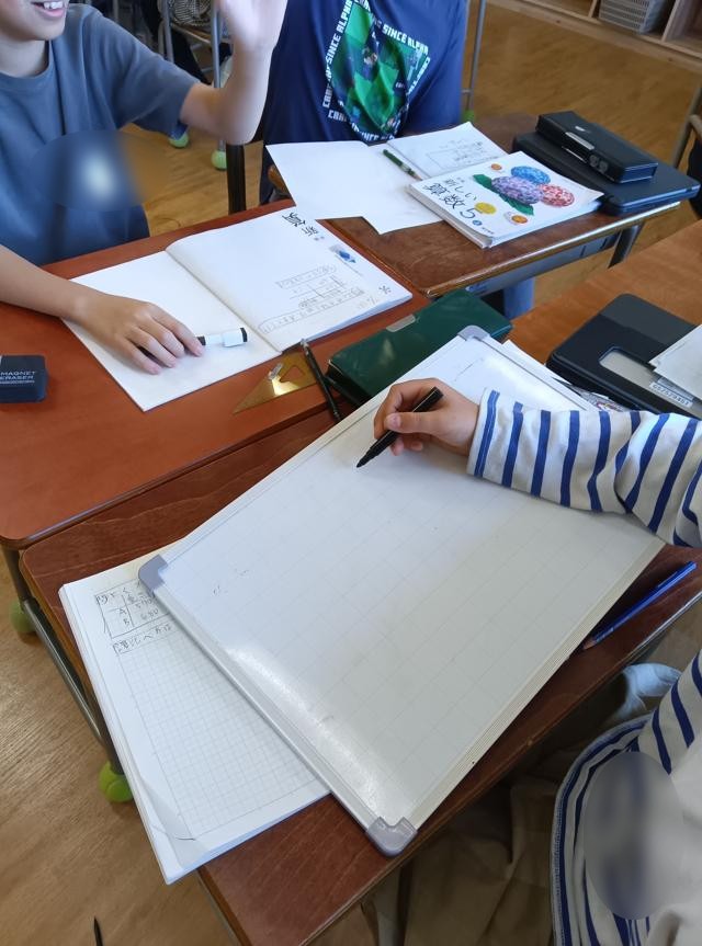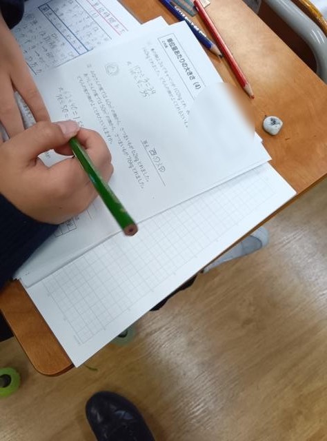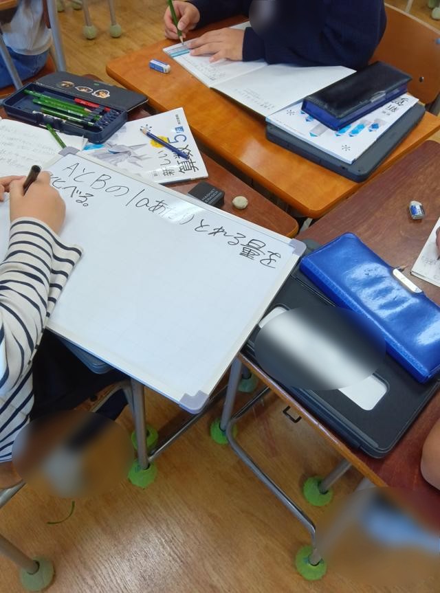 算数で「単位量あたりの数」の学習が続いている5年生、様々な状況の問題で、「単位量あたり」という考え方にも慣れてきたようです。