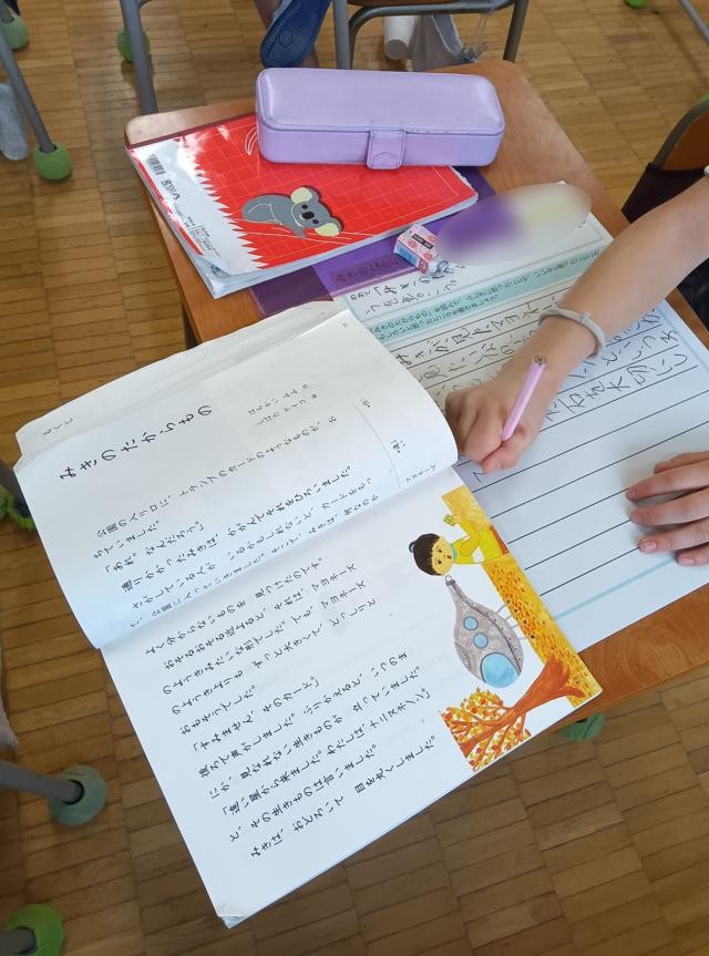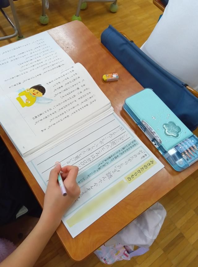 2年生の国語は新しい物語文の学習に入っていました。タイトルは「みきのたからもの」です。昨年度の教科書から採用された新しい教材なので、私は内容については詳しくありませんが、主な登場人物は、