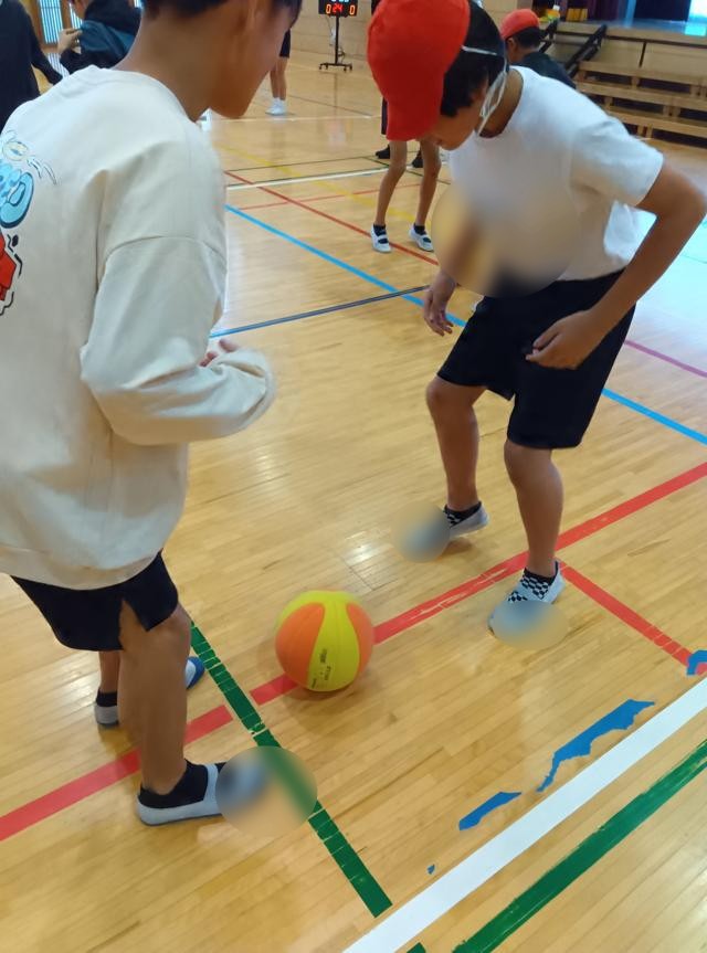 その後は、ボールを使ってドリブルやシュートの練習をしていきました。先生方は、小学校のゴールだと軽々ダンクシュートを決めていました。バスケットボール云々というよりも、運動そのもの、そしてその楽しさを教えていただきました。ありがとうございました。