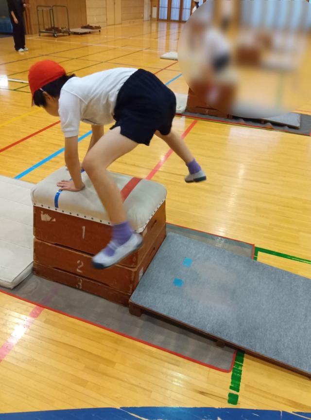 跳び箱は苦手、という児童も多いですが、ポイントを押さえて練習していけばみんな跳ぶことができるようになります。少し怖いなと思っていると先に手をついてしまうことがありますが、これだと手で体を止めてしまって跳び箱を越すことができません。正しくは、