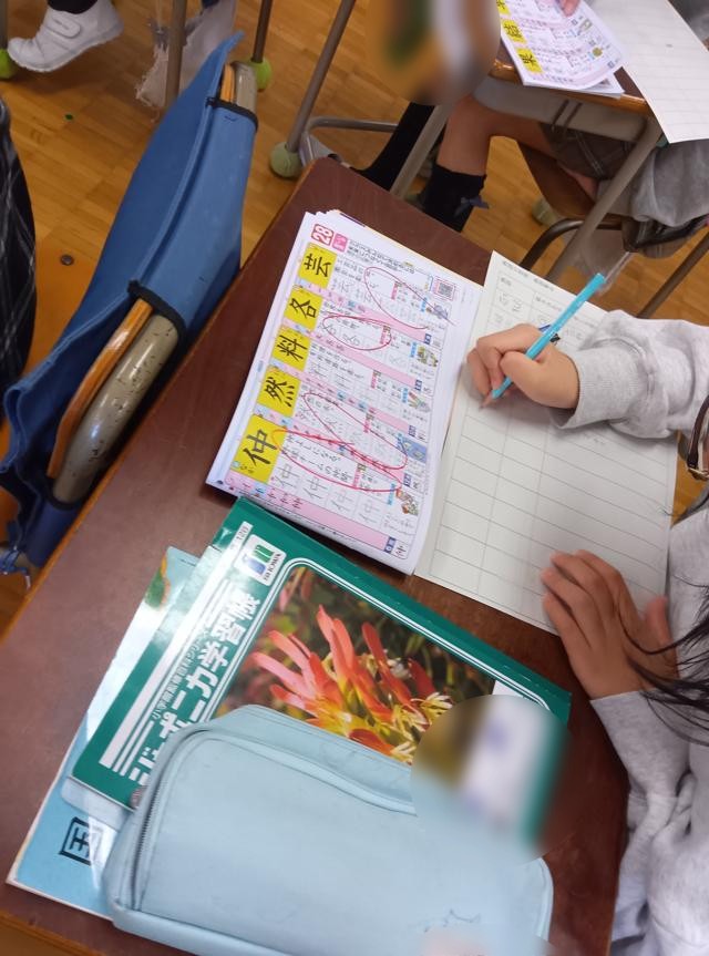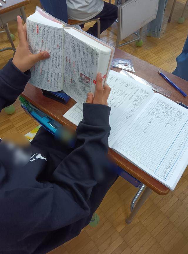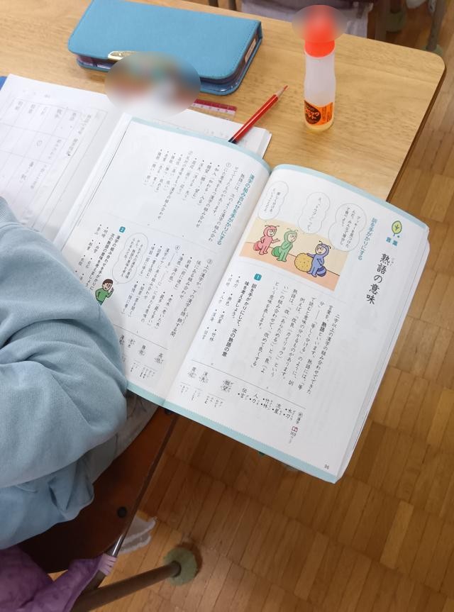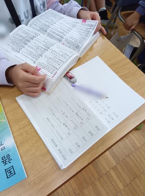 4年生の国語の言葉の学習です。「熟語」について学習していました。今回は熟語を4つの種類に分類して、それもヒントにして、熟語の大体の意味をつかむのが目的です。4つの種類は、